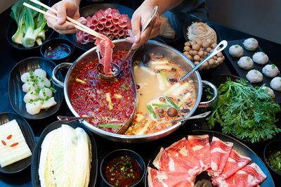 Our step-by-step guide to creating the perfect hot pot ensures that every bite you take hits the spot. Family style hot pots include our signature broth bases made with a variety of Chinese herbs and spices, plus an array of quality ingredients to customize your hot pot. Protein, seafood and vegetable selections, as well as our fresh handmade noodles are offered alongside your broth to amplify your meal.